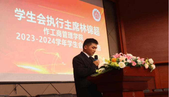 紧接着,学生会执行主席林锦超作必赢3003no1线路检测中心2023-2024学年学生会工作报告。报告全面回顾了过去一年学生会的工作亮点和成果,分析了存在的问题和不足,并提出了未来一年的工作目标和计划,抒发了对探索改革创新、书写青春篇章的美好期望。